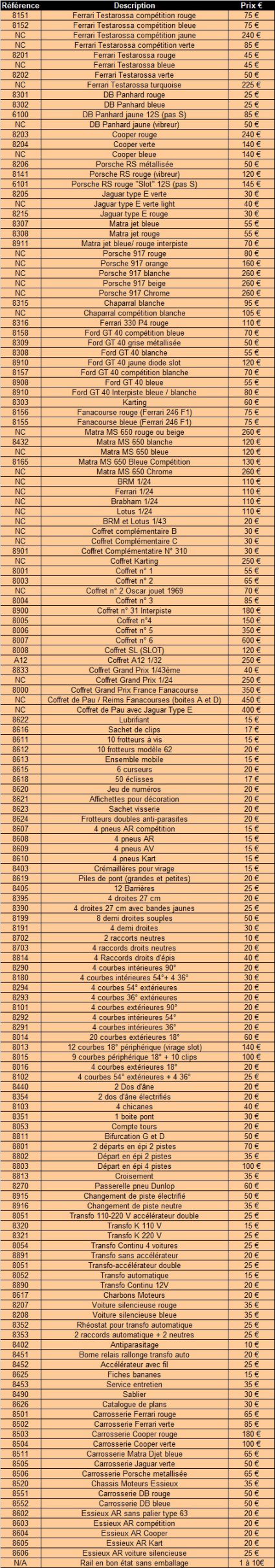 Références Circuit 24 et valeurs estimées (Moyennes Ebay, Aucland, Bourses, Divers)